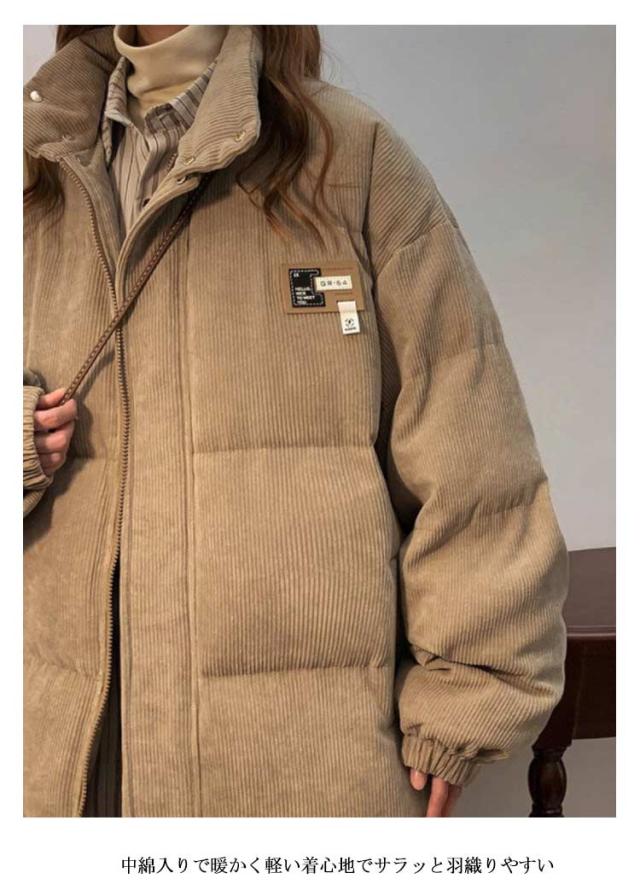 全2色!中綿コート コーデュロイ キルティングコート ジャケット レディース 無地 アウター 秋冬 長袖 ハイネック 中綿 コーデュロイ 大きいサイズ 中綿入り 防寒 暖かい 防寒コート キルティングジャケット 羽織り 上着 防風 厚手 大人 可愛い シンプル 送料無料