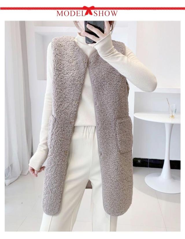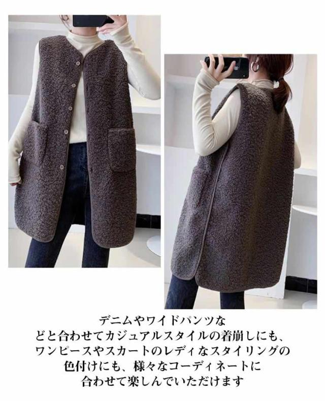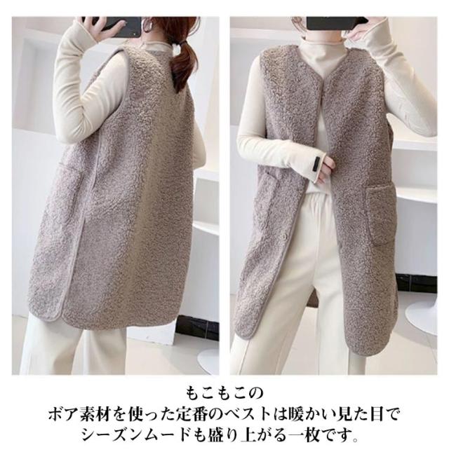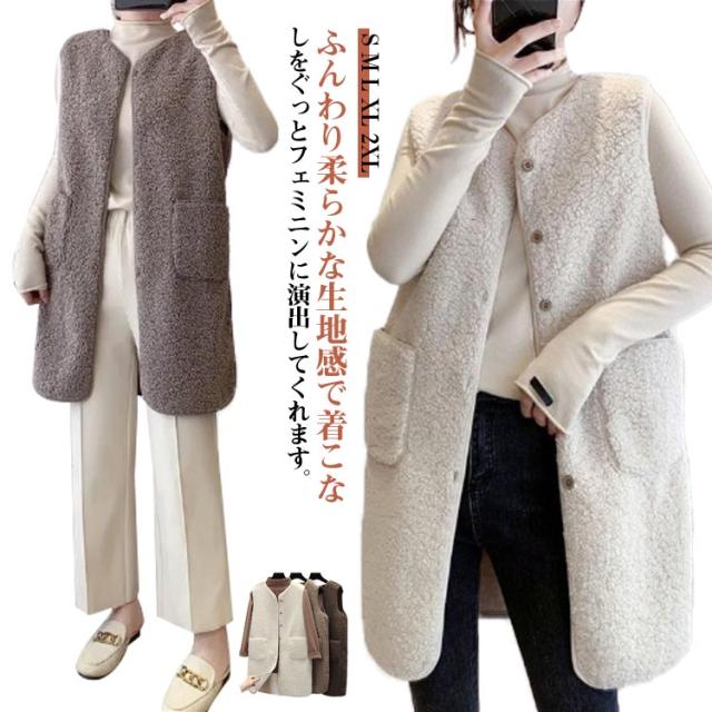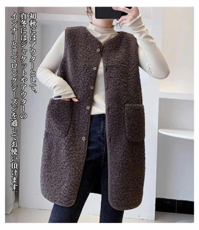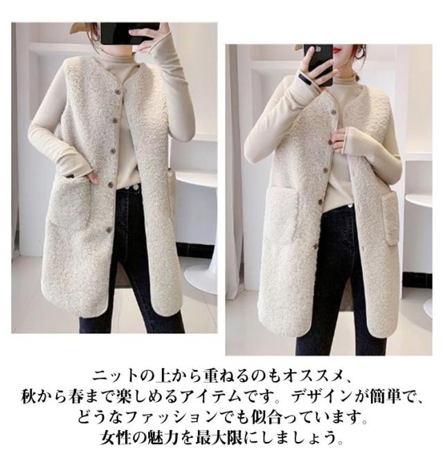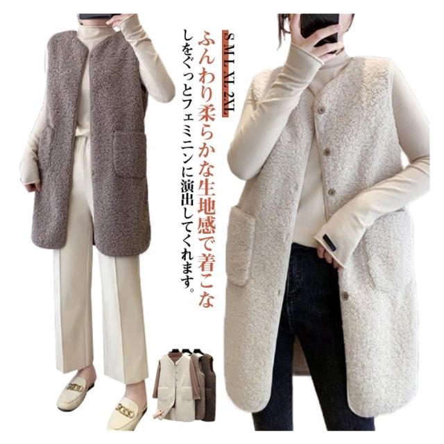 女性 アウター 上着 ジャケット 羽織り アウター ボアベスト ボアジャケット ノースリーブ ボア 前ボタン 無地 袖なし ベスト モコモコ ロング丈 レディース ベスト ポケット 暖かい あったか ボア 体型カバー お出かけ 普段使い 婦人用 送料無料 S M L XL