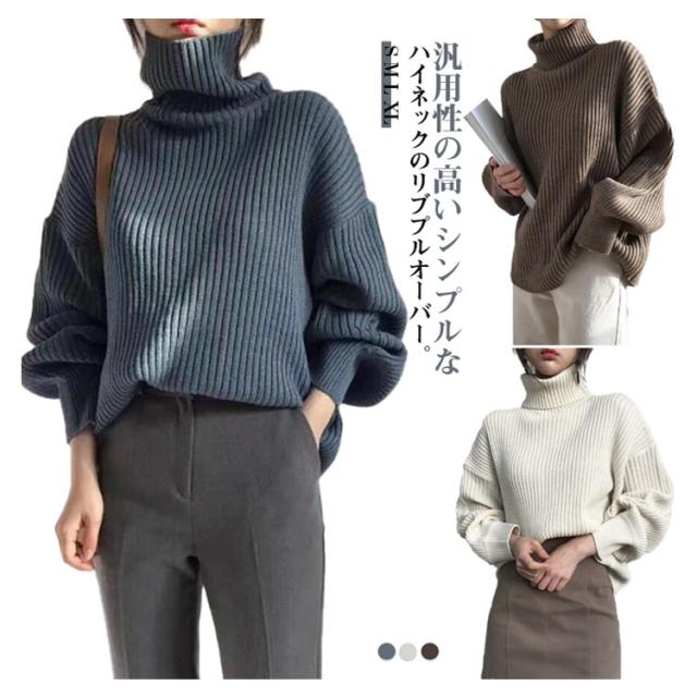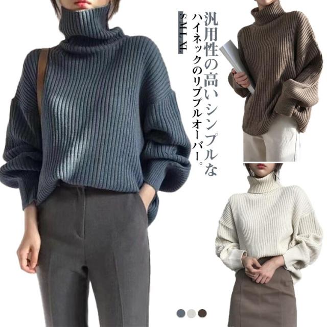 セーター トップス 上着 タートルニット リブニット タートルネック ニット 長袖 ゆったり ハイネック 冬 リブニット リブ プルオーバー チュニック インナー 秋冬 レディース きれいめ リブニット 無地 レイヤード 重ね着 ストレッチ 冷え取り 秋 冬