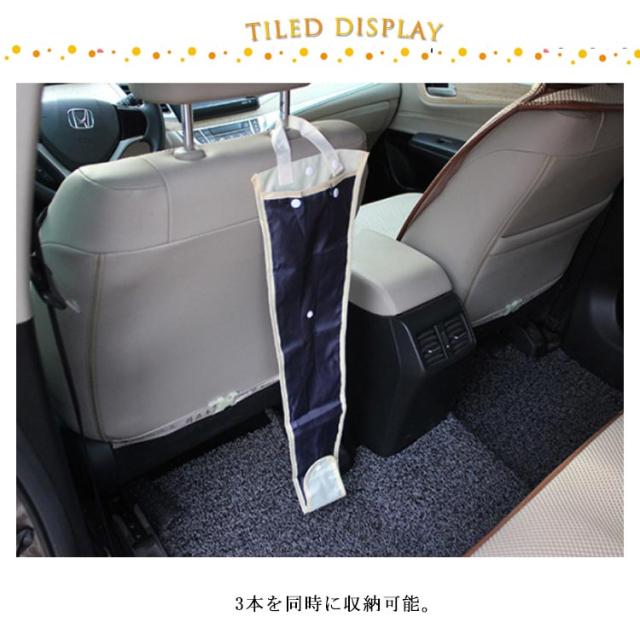 | 濡れた傘をさっと収納! 子供用の短い傘や折りたたみ傘など、傘のサイズに合わせてボックボタンで長く調節できます。 3本を同時に収納可能。 底にあるボタンを外せば、受け止めた水を排水することができ、車内を乾燥させ清潔に保つことができます | |