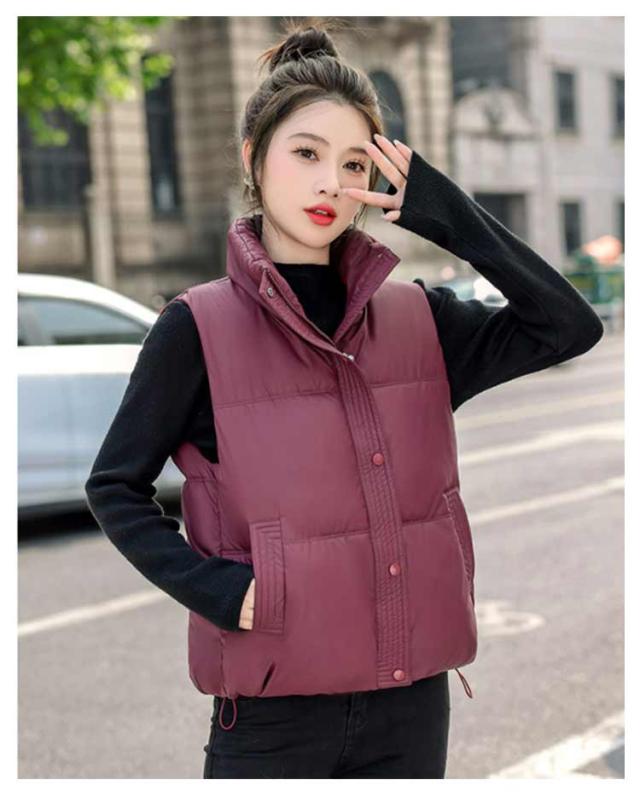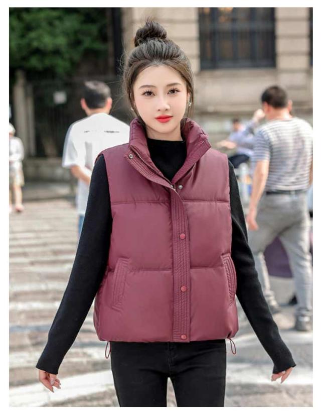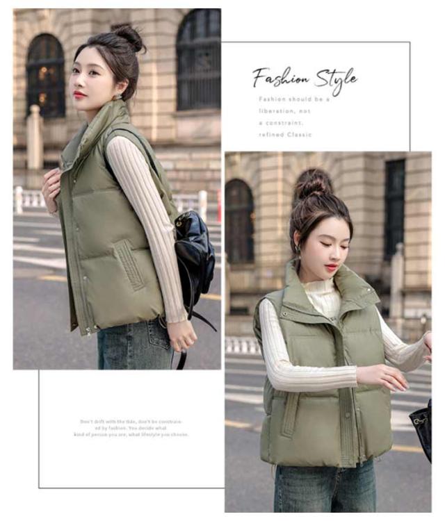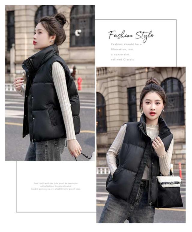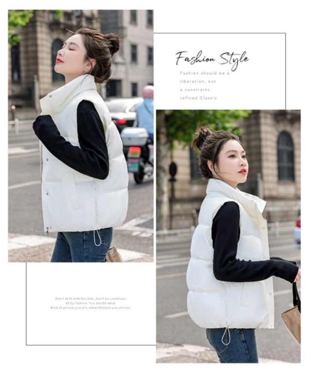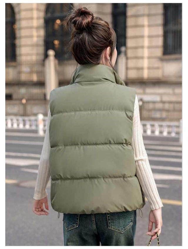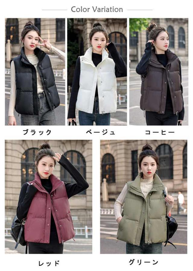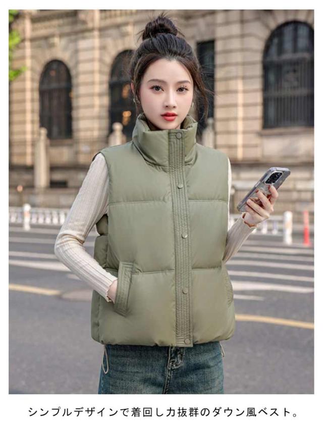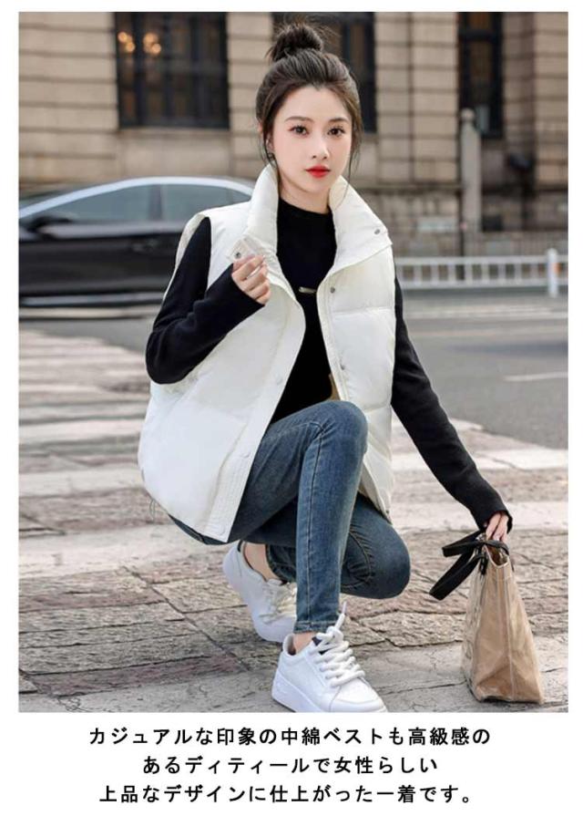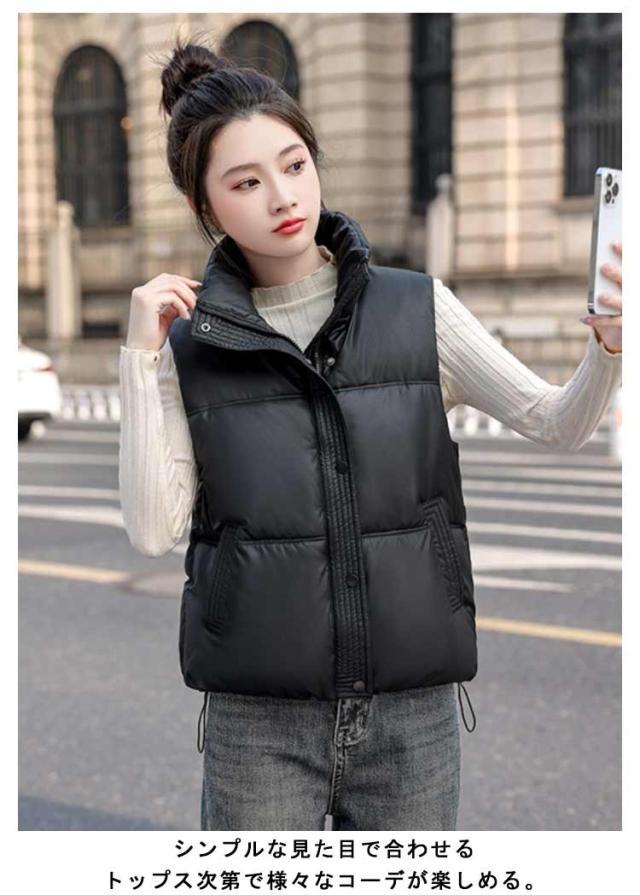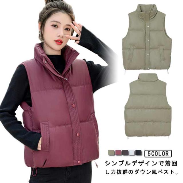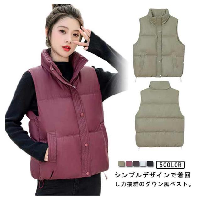 秋冬 ベスト 羽織り ライトアウター 前開き 立ち襟 ゆったり トップス 中綿ベスト 中綿 ジャケット キルティング 厚手 防寒 軽量 暖かい ノースリーブ ポケット付き 通勤 通学 韓国風 カジュアル 中綿ベスト 春秋 秋