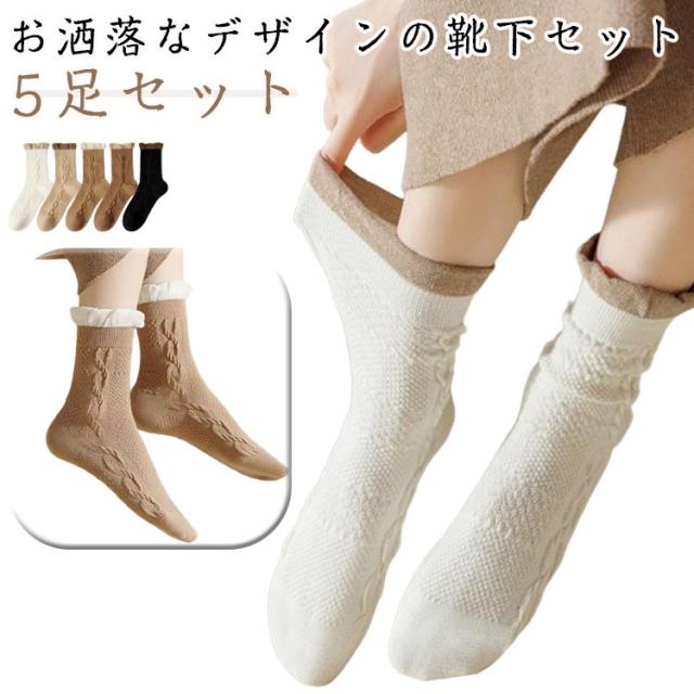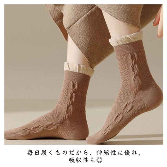 厚手 5足セット クルーソックス 靴下 婦人 レディース 無地 クルー丈 冬用 おしゃれ ソックス カジュアルソックス 冷え対策 くつした 暖かい 防寒 スニーカーソックス 冷えとり 冷房対策 保温 靴下 対策 レディースソックス 厚手靴下
