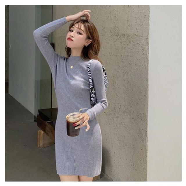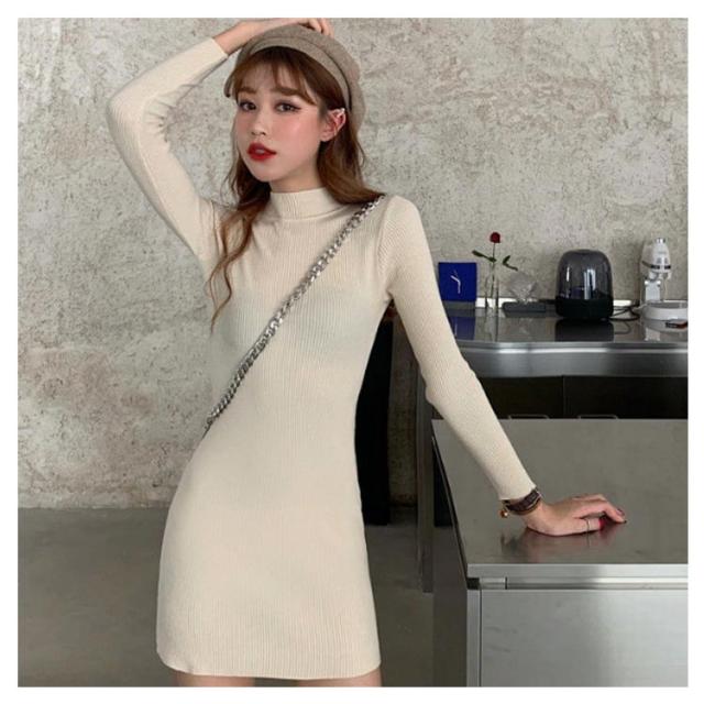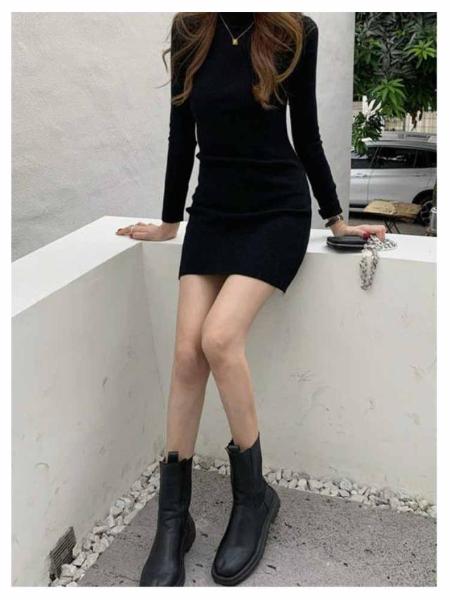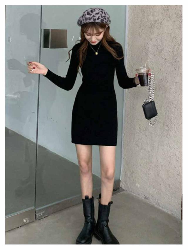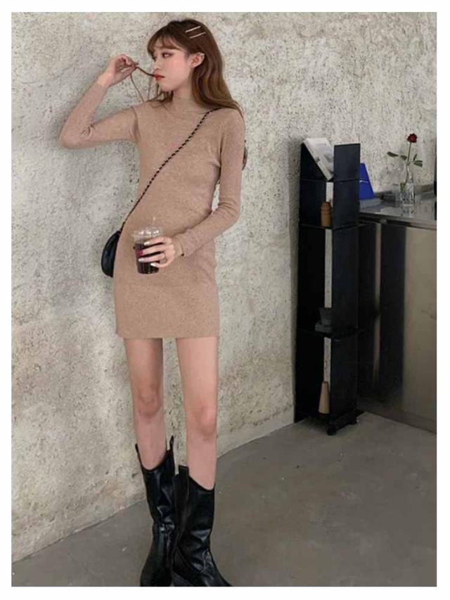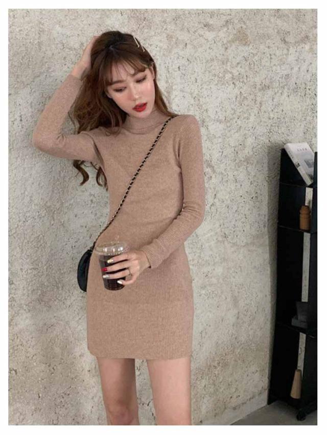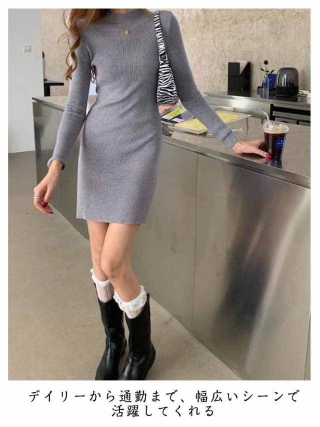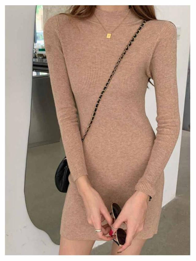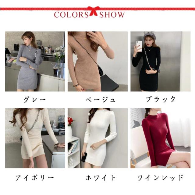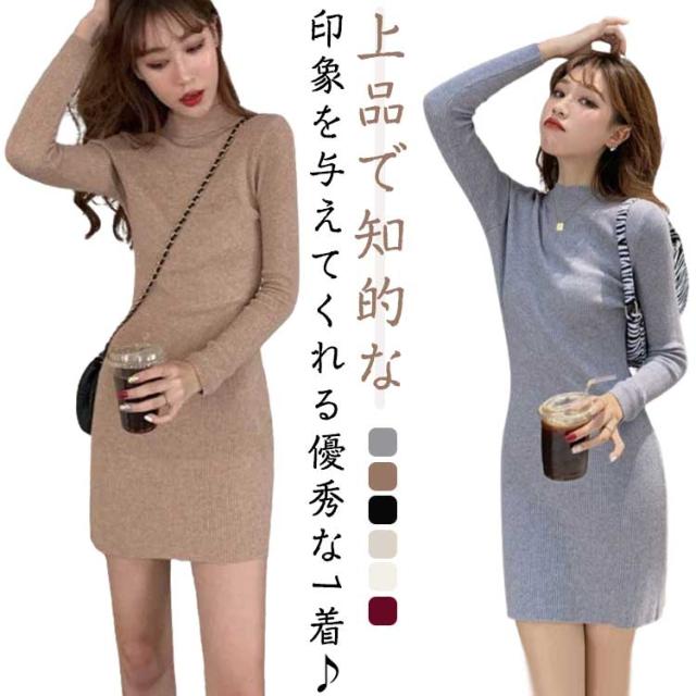 ニット ニットワンピース ロングワンピース 長袖 膝丈ワンピース レディース トップス 膝丈 秋冬 ニットソー チュニック ハイネック ニットワンピ ワンピース タイト シンプル ワンピース オシャレ 黒 きれいめ プチハイネック ニットワンピース 大人 カジュアル