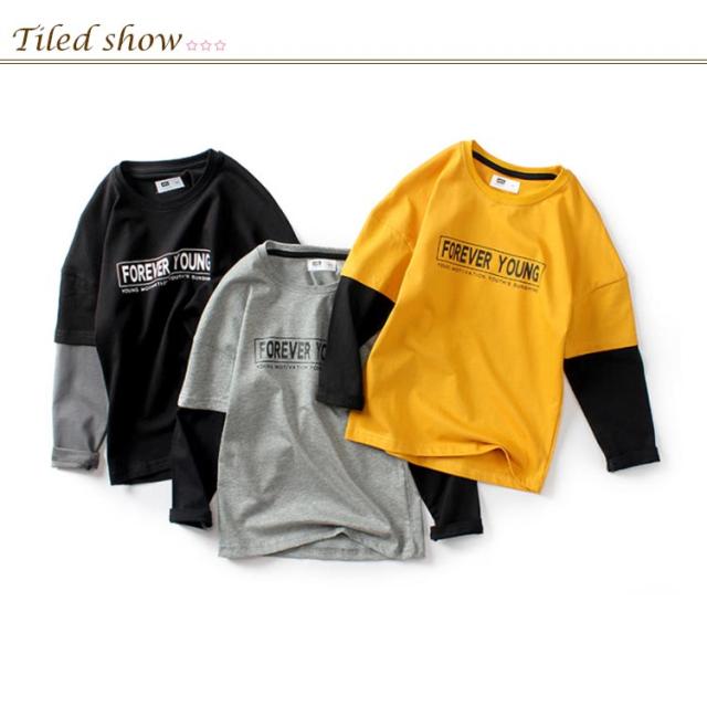 韓国子供服 バイカラー 大人っぽい 子供服 小学生 tシャツ ロンT 長袖 男の子 キッズ ジュニア ロンT ファッション ダンス 大きいサイズ トップス カジュアル おしゃれ カットソー トップス 通学 ダンス衣装 ギフト プレゼント