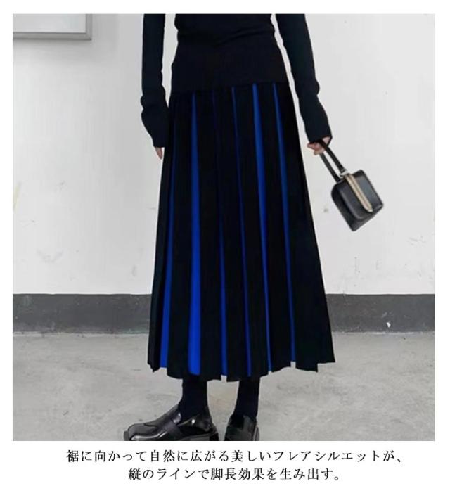 配色 スカート ミモレ レディース ニット ロングスカート バイカラー 上品 きれいめ 配色 ロング丈 秋冬 ボトムス スカート 膝下 ひざ下 プリーツ フレア Aライン ウエストゴム 防寒 ゆったり フレアスカート