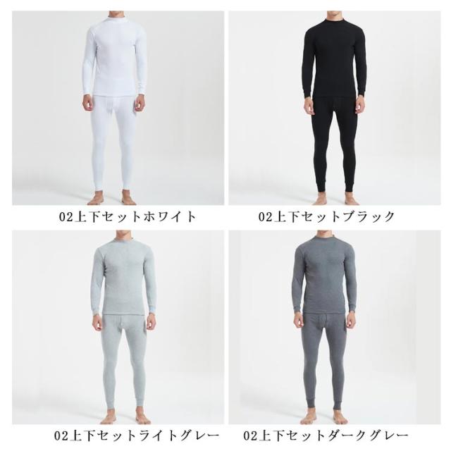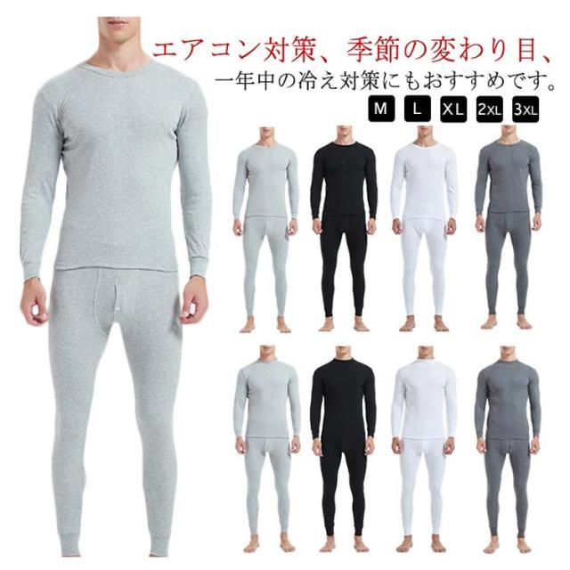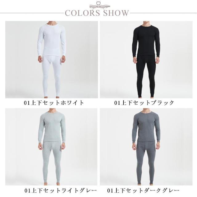 上下セット レギンス 下着 長袖 ヒートインナー 2タイプ選べる ラウンドネック メンズ 防寒インナー 柔らか 保温 シンプル 肌着