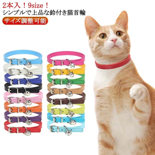 猫の首輪 合成皮革 くびわ ペット おしゃれ 小型犬 首輪 鈴付き 2本入り!PUレザー 猫用 首輪 サイズ調整可能 猫 シンプル 子猫 可愛い ペットグッズ セーフティ 安全 猫首輪 かわいい ねこ ギフト お洒落 猫用品 犬用品
