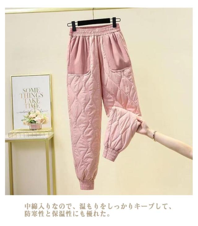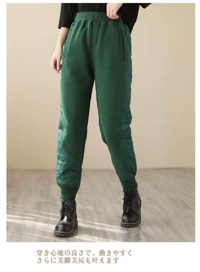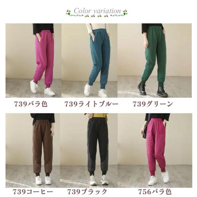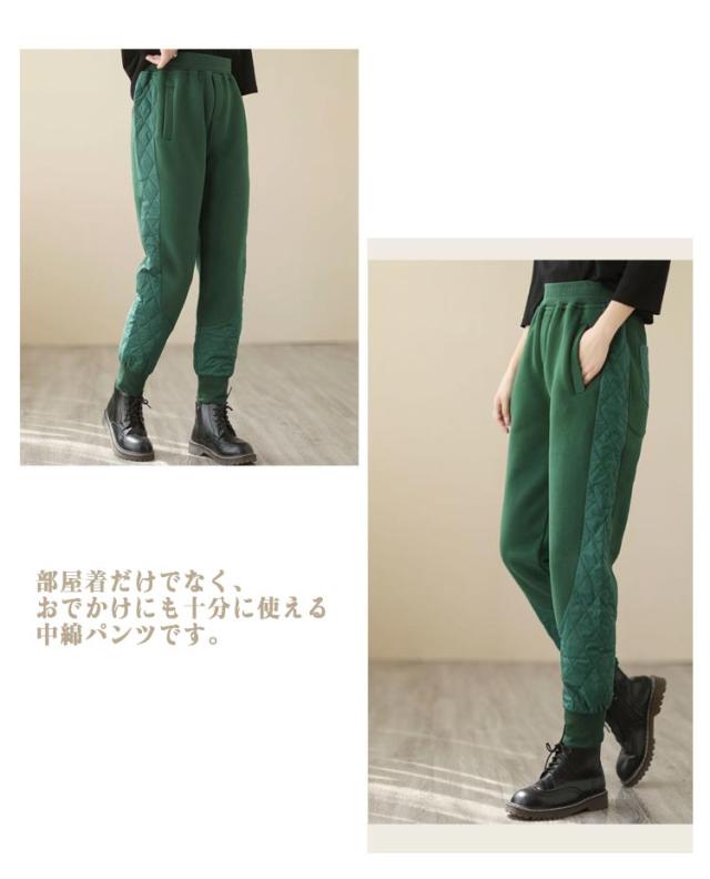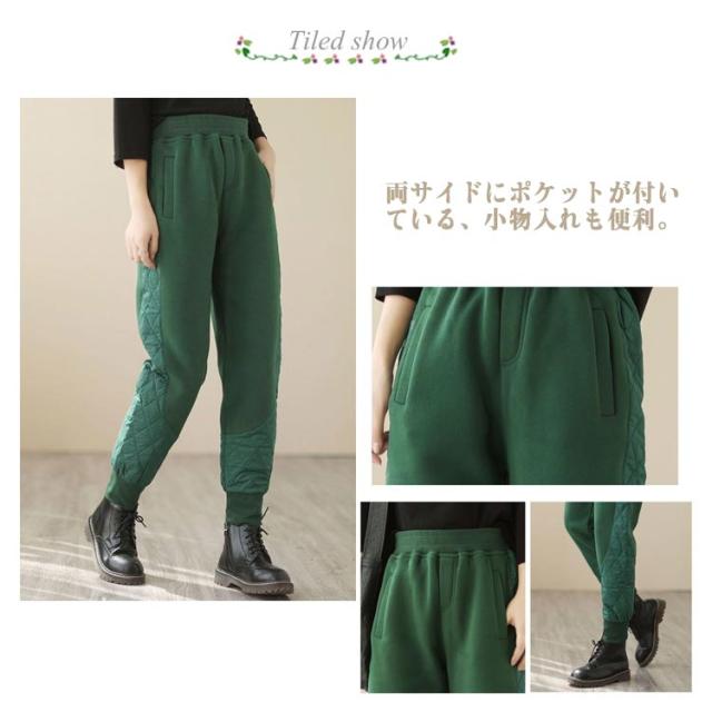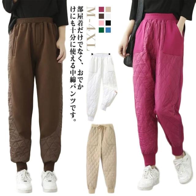 キルティング 防寒パンツ レディース 秋冬 中綿入り パンツ ロングパンツ 秋 テーパードパンツ ガウチョパンツ ボトムス 無地 ウエストゴム 暖かい 大きいサイズ 体型カバー ポケット付き 厚手 ルームウェア 部屋着 40代 50代 30代 秋 冬 送料無料