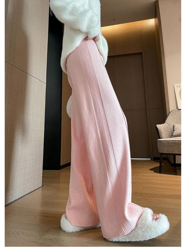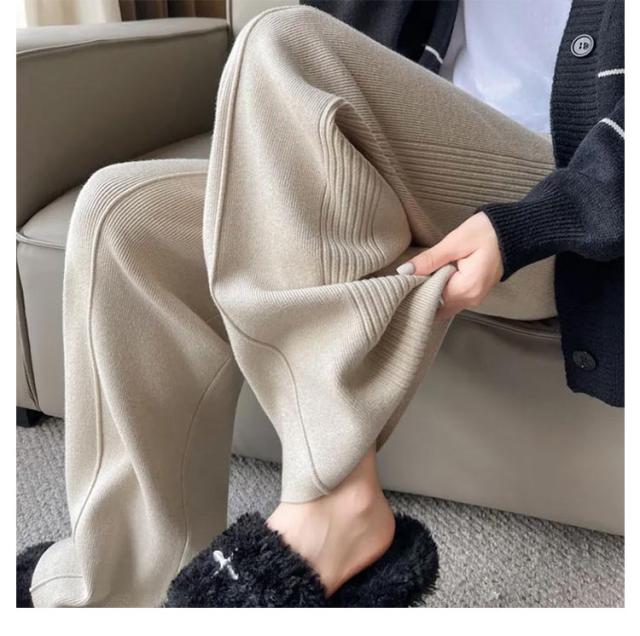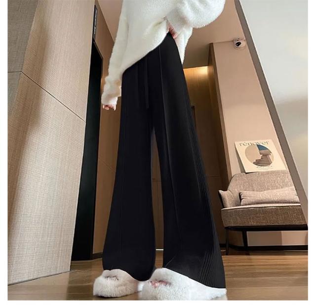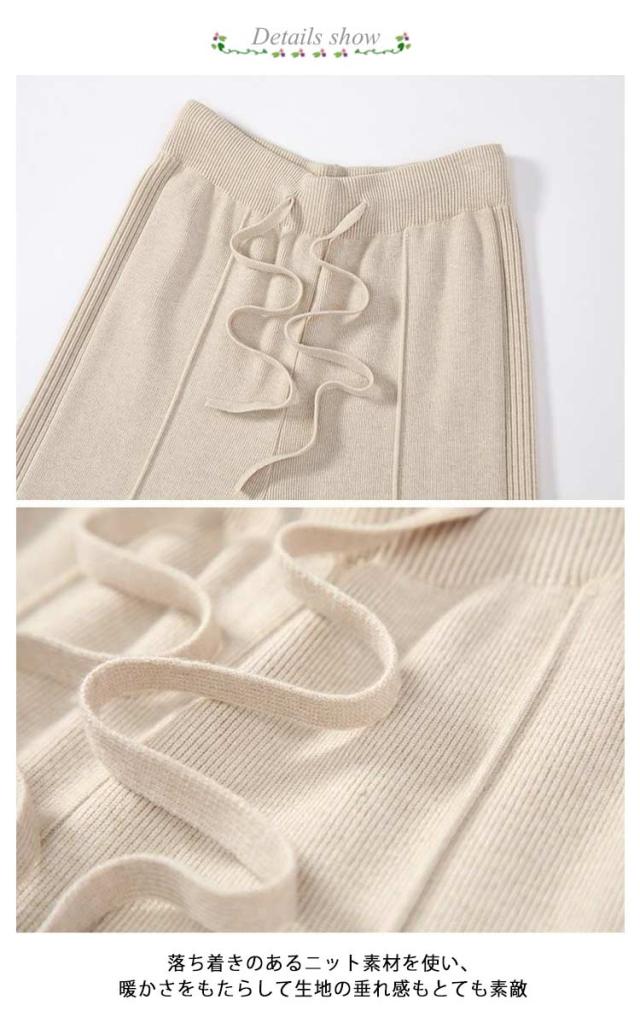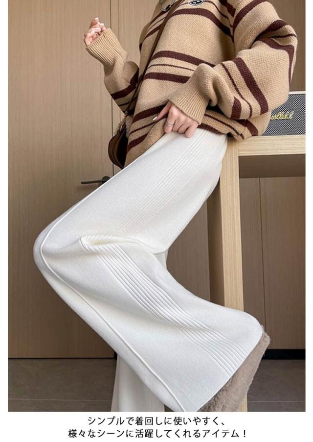 レディース ワイドパンツ ロングパンツ ニット 秋冬 ボトムス ワイドパンツ リブニット ウエストゴム フレアパンツ ニット パンツ ズボン ゆったり 美脚 おしゃれ おしゃれ 大人