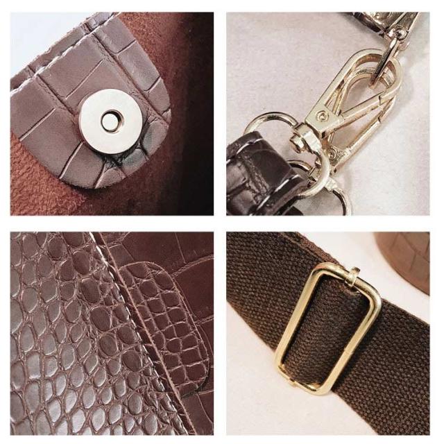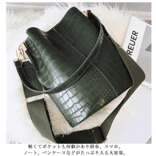 | シンプルで上品で、着まわしが利く!フェイクレザーショルダーバッグ パチッとしっかり留まるマグネット開閉、上が少し広がっていて使いやすい。 しっとりとした触り心地のよいPUレザーの質感にすっきりとしたシンプルフォルム。 生地には少し光沢があり、落ち着いた大人っぽいカラーにマッチ! ショルダーストラップは長さが無段階で調節できます。 シンプルでスマートな形なのでカジュアルになり過ぎず、きれいめスタイルに合わせてもOK。 軽くてポケットも何個かあり財布、スマホ、ノート、ペンケースなどがたっぷり入る大容量。 | |