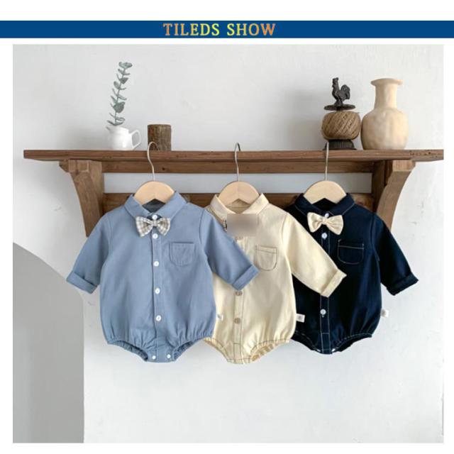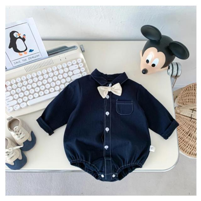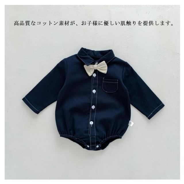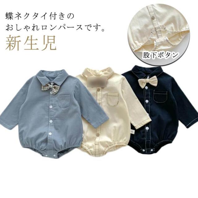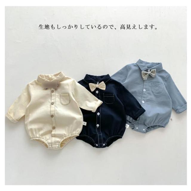 ベビー服 ロンパース シャツ風ロンパース 男の子 新生児 子供服 蝶ネクタイ付き キッズ フォーマルロンパース ロンパース 襟付き 長袖 春 赤ちゃん お食い初め 服 股下ボタン 秋 フォーマル ロンパース