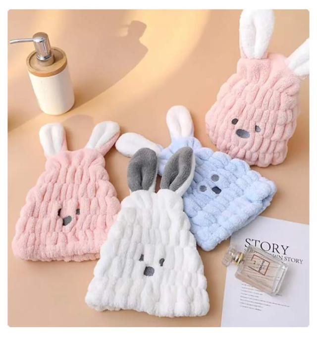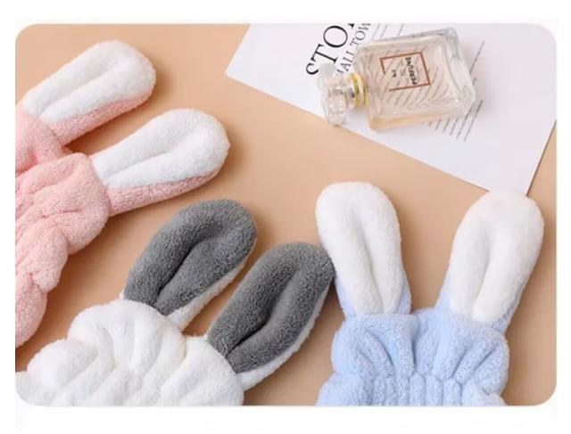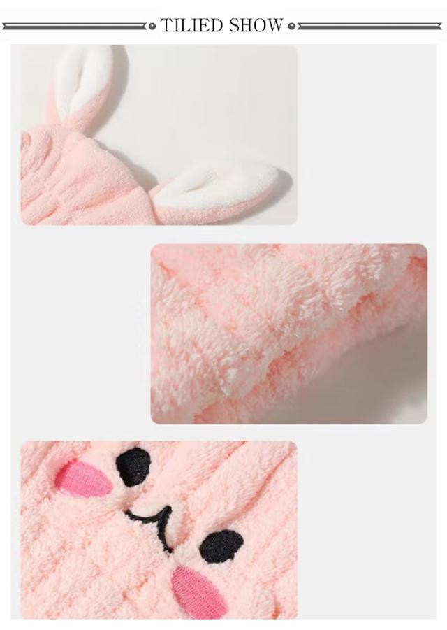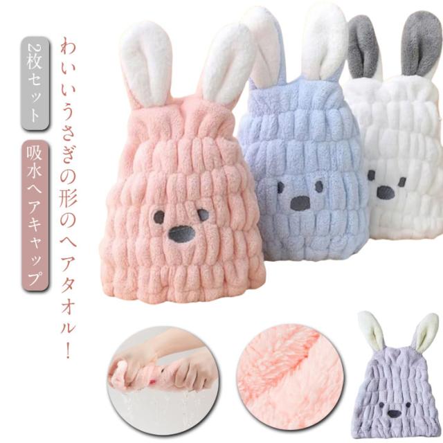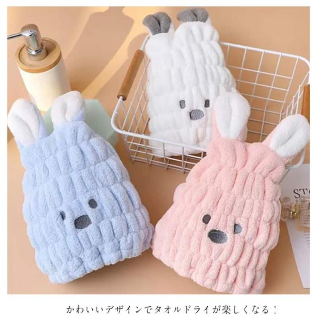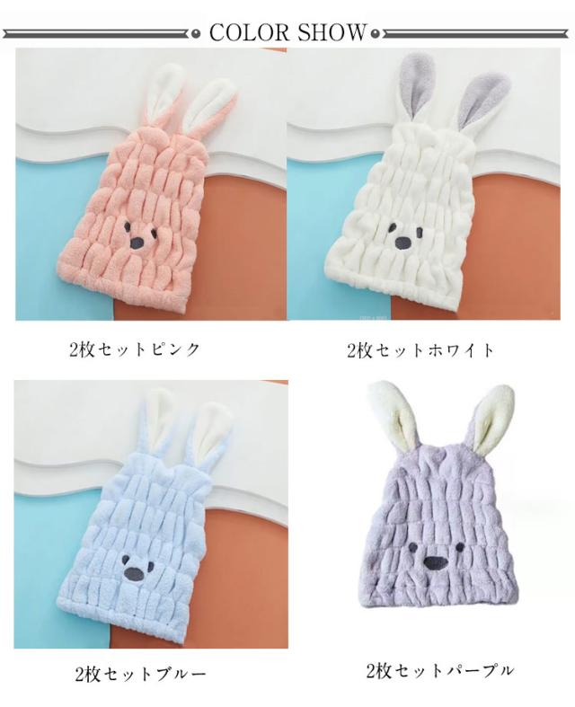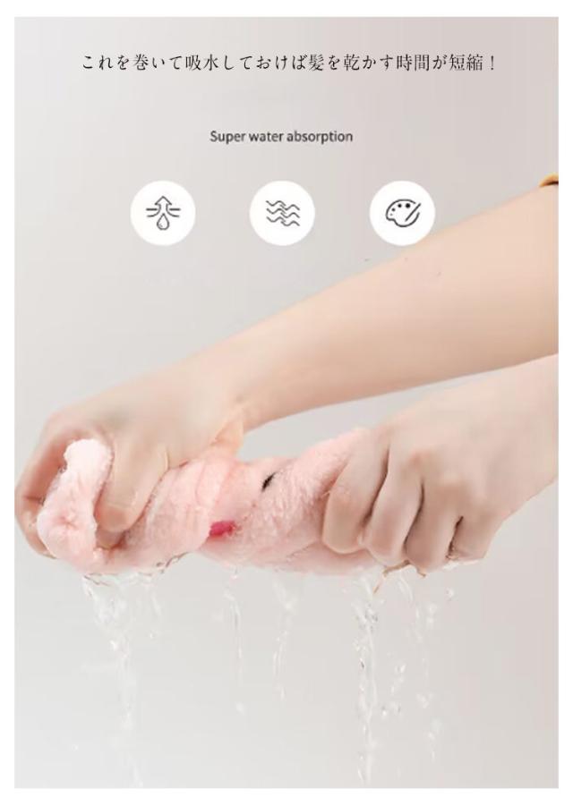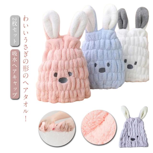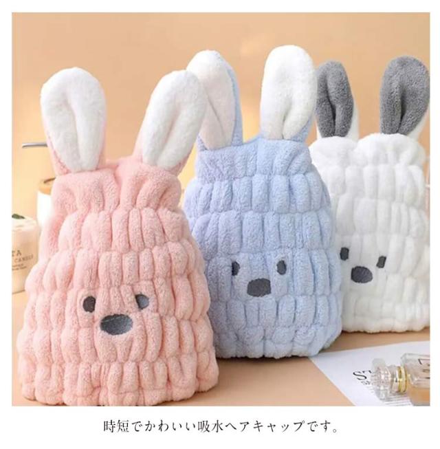 | わいいうさぎの形のヘアタオル! かわいいデザインでタオルドライが楽しくなる! これを巻いて吸水しておけば髪を乾かす時間が短縮! 時短でかわいい吸水ヘアキャップです。 | |