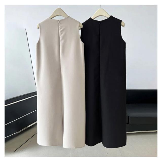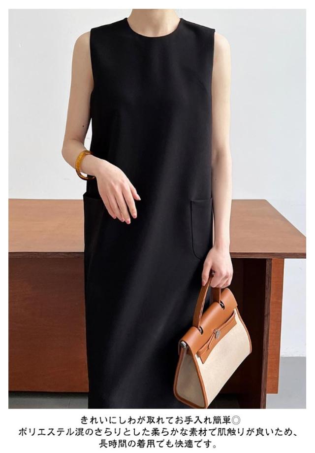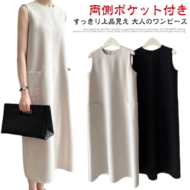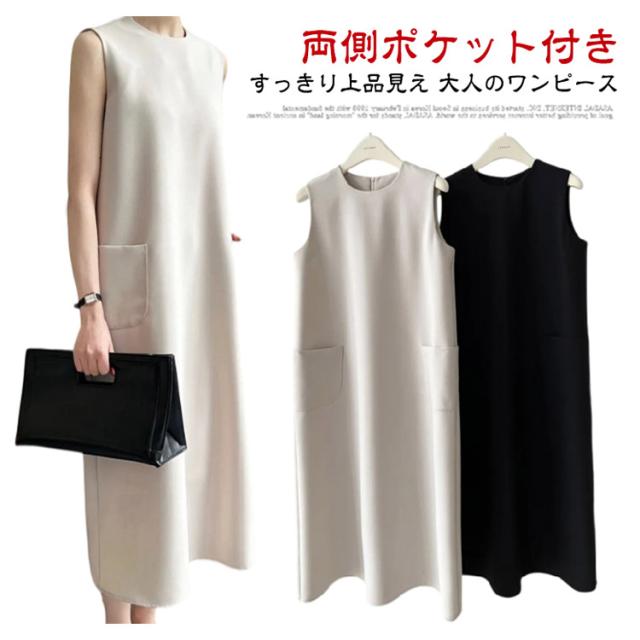 Iライン 春 ワンピース ロングワンピース きれいめ ワンピース ロング丈 秋 レディース ワンピース スッキリ カジュアル ノースリーブ ロング ワンピ 袖なし お洒落 体型カバー 着痩せ 華奢見え シンプル ドレス 夏 オフィス 通勤 OL 20代 30代 40代 50代