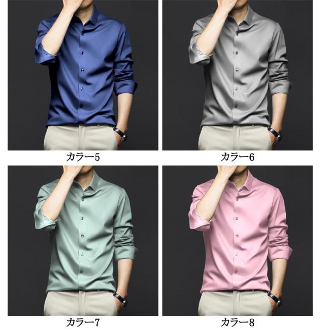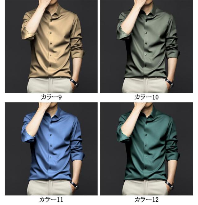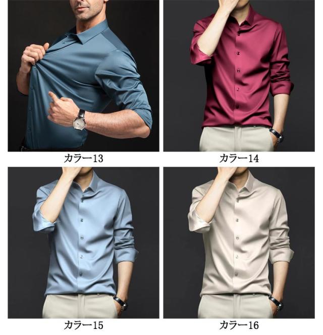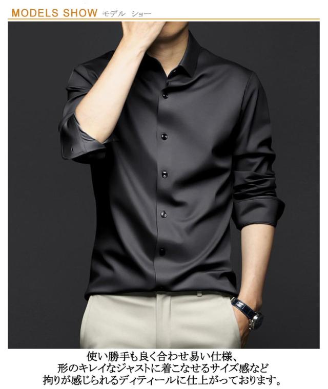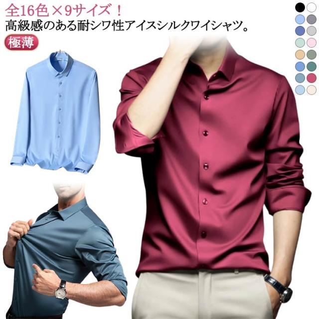 ノーアイロン Yシャツ 耐シワ性 極薄 アイスシルクワイシャツ レギュラー おしゃれ 長袖シャツ ワイシャツ ストレッチ メンズ 白 フォーマル yシャツ ビジネス 黒 長袖シャツ 夏 トップス 紳士服 送料無料 大きいサイズ 春 夏 秋 無地