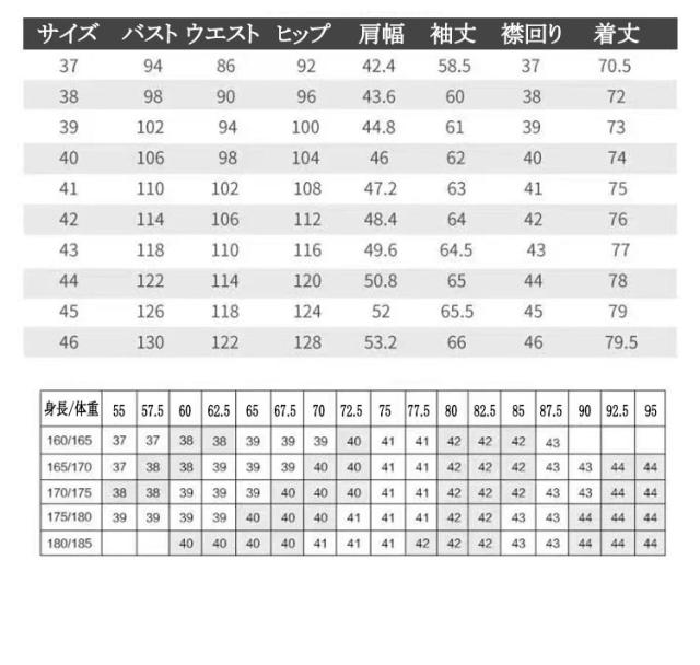 | サイズ | 38/S 39/M 40/L 41/XL 42/2XL 43/3XL 44/4XL 45/5XL 46/6XL |