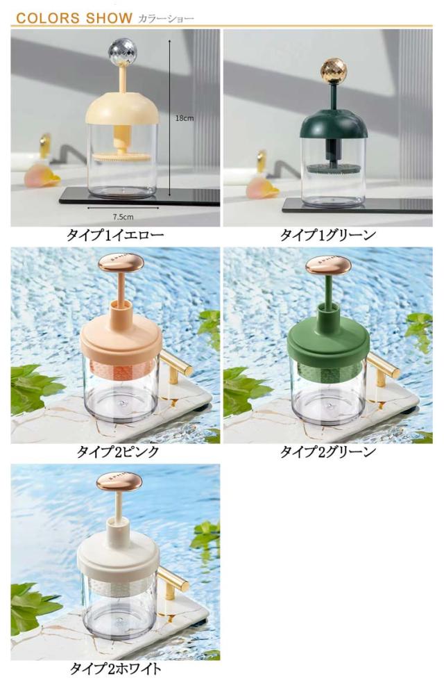 | 豊かな泡を素早く作り、毛穴を深くきれいにするのに役立ちます。 シャンプー、や洗顔料はもちろん、固体の石鹸も適用します。 適量の水をボトルに注ぎ、ハンドルを上下に持ち上げ、濃い泡を作ります。 使用後のお手入れも簡単で、乾燥しやすくて衛生的です。 | |