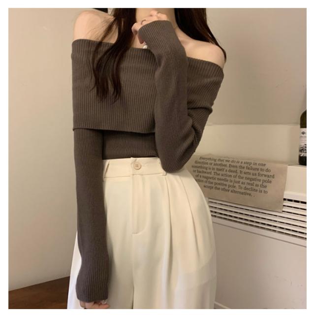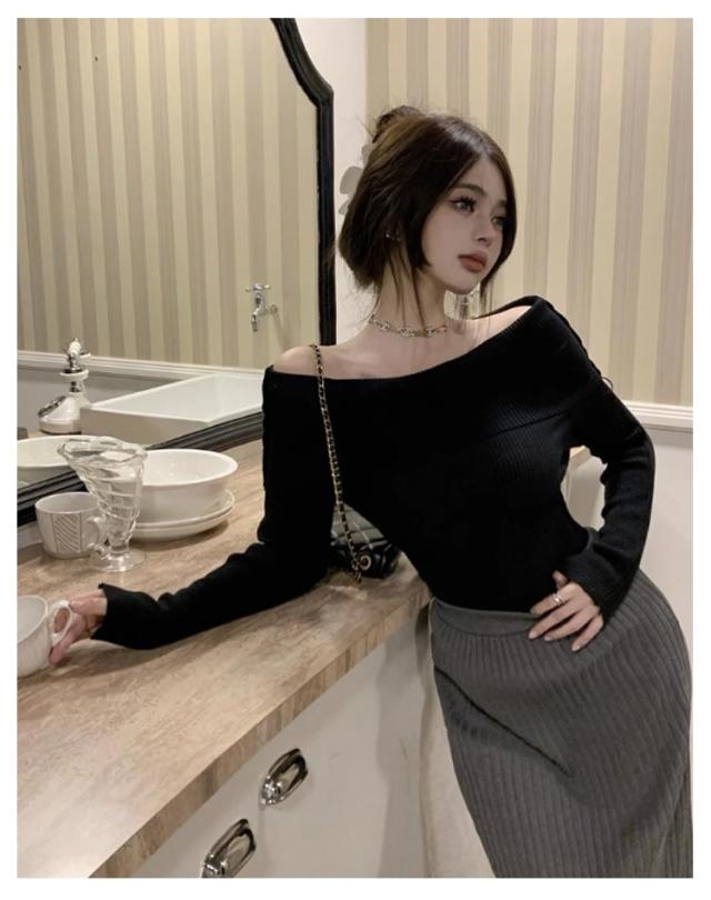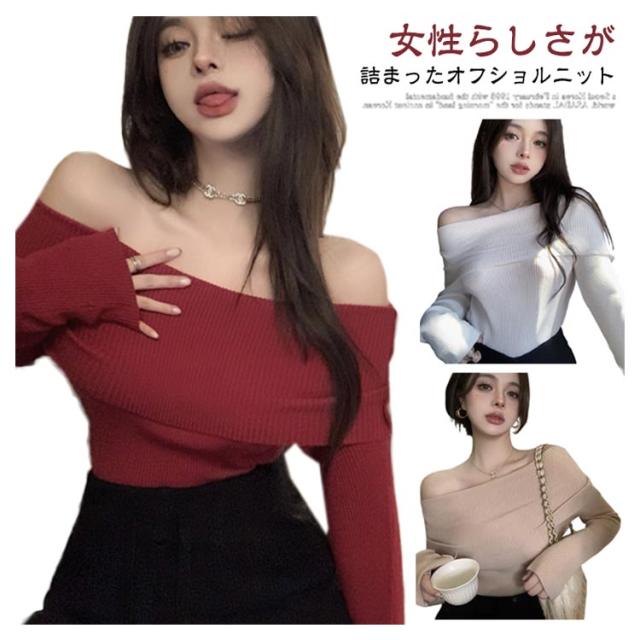 肩だしが素敵 オフィス ニット リブニット 長袖 セーター オフショルダー トップス レディース レディース トップス リブニットトップス オフショルダー 秋冬 長袖ニット スリムフィット オフショルダーリブニットトップス