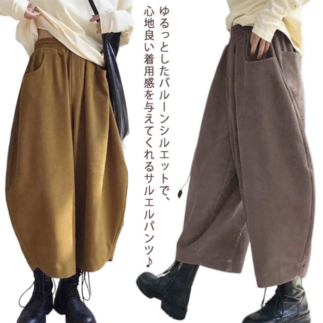 バルーンパンツ サルエルパンツ レディース 秋冬 パンツ ハロンパンツ サーカスパンツ コクーンパンツ ワイドパンツ 体型カバー ロングパンツ ウエストゴム ハイウエスト 落ち感 総ゴム ストレッチ ゆったり 送料無料 ダボダボ ゆるめ アラジンパンツ