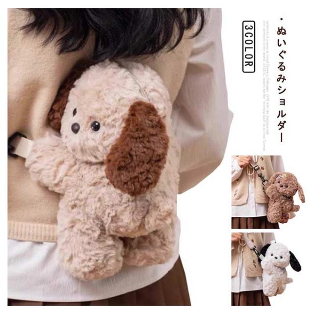 ミニポーチ ぬいぐるみバッグ ショルダーバッグ バッグ 犬 斜め掛け ポシェット ぬいぐるみバッグ かわいい イヌ 小さい ふわふわ