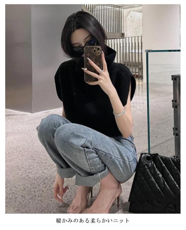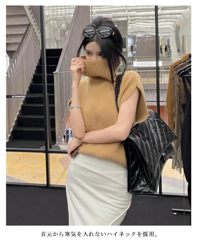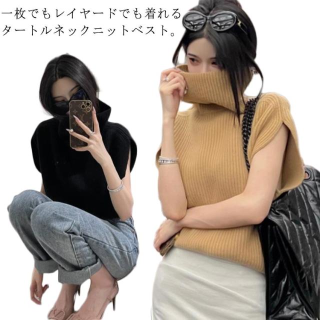 ノースリーブ ニットベスト レディース 秋 タートルネック ベスト ハイネック 大人可愛い 肩落ち ベスト 厚手 冬 ドロップショルダー ゆったり あったか プルオーバー ニットトップス トップス おしゃれ きれいめ 通学 通勤 レイヤード 重ね着 20代 30代 40代 50代
