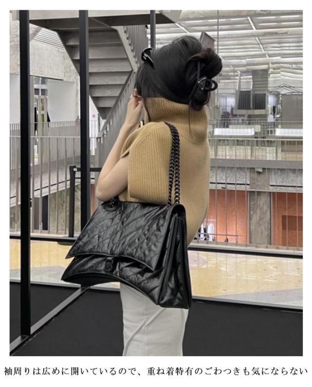 | 一枚でもレイヤードでも着れるタートルネックニットベスト。 首元から寒気を入れないハイネックを採用。 袖周りは広めに開いているので、重ね着特有のごわつきも気にならない。 暖かみのある柔らかいニット シンプルかつ使いやすいデザインでコーデのテイストを選ばないニット。 ブラウスやカットソーにレイヤードするだけでこなれた印象に。 | |