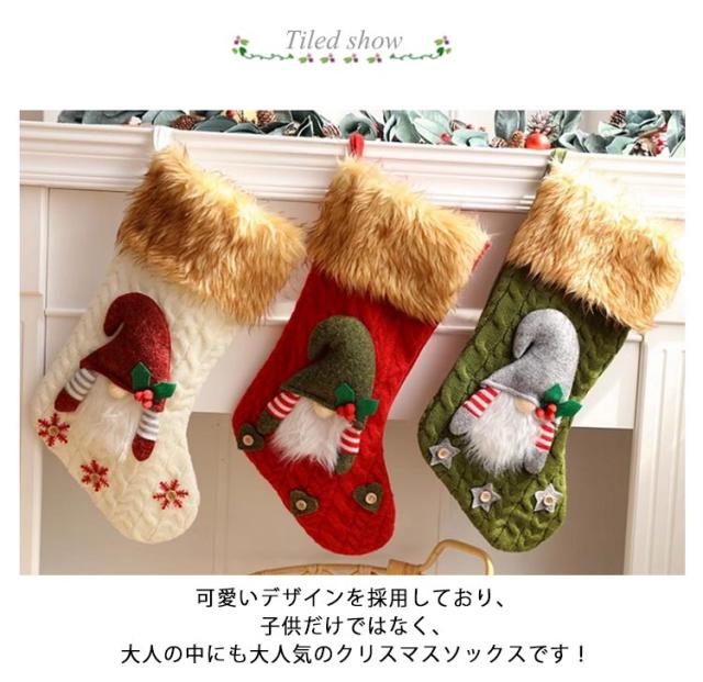 | お菓子、キャンディ、プレゼントなどを入れる十分な大きさで、子供たちにサプライズする用にオススメです。 素敵なクリスマスプレゼントやデコレーションになりましょう。 細やかな作りと立体的なデザイン、手作り感も満載です。 クリスマスの雰囲気には欠かせない高品質なクリスマス靴下です。 可愛いデザインを採用しており、子供だけではなく、大人の中にも大人気のクリスマスソックスです! | |