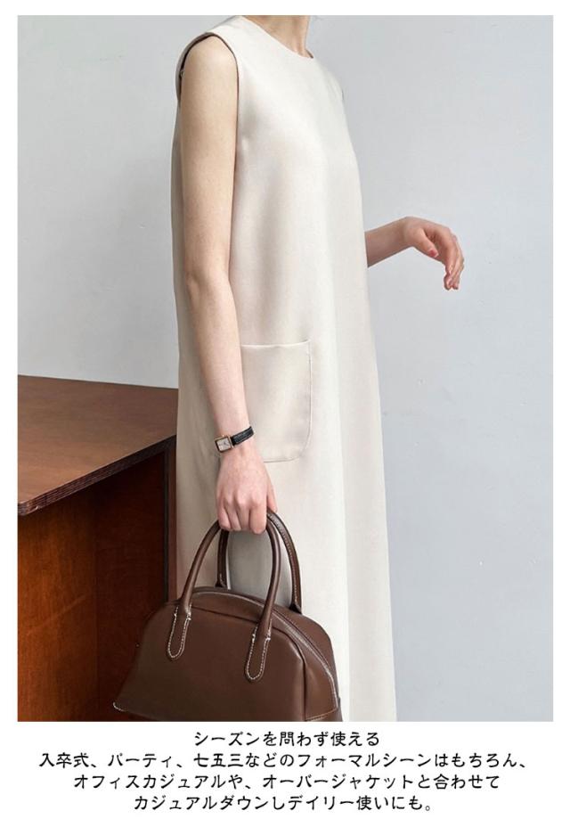 | すっきり上品見え 大人のワンピース シーズンを問わず使える 入卒式、パーティ、七五三などのフォーマルシーンはもちろん、 オフィスカジュアルや、オーバージャケットと合わせてカジュアルダウンしデイリー使いにも。 一枚あると助かるシンプルワンピースです。 体型カバーで 細見え魔法ワンピース シンプルなIラインワンピースはスラリとした スタイルアップ効果も。 きれいにしわが取れてお手入れ簡単◎ ポリエステル混のさらりとした柔らかな素材で肌触りが良いため、長時間の着用でも快適です。 <details> ●両側ポケット付き ●バックスリットが施されている、動きやすさを提供しつつ、さりげない女性らしさを演出します。 ●上品見えなラウンドネック ●着脱のしやすいファスナ 一付き | |