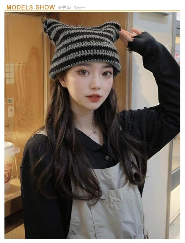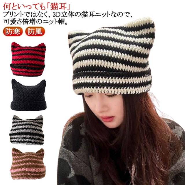 送料無料 ニット帽 猫耳 帽子 ねこ耳 ニット ニット帽子 ニット帽 耳付き レディース 防寒 帽子 冬 シンプル ストライプ ニット帽 ボーダー柄 厚手 ニット帽 レディース ニットキャップ メンズ ニット帽 ビーニー帽 ビーニー ニットキャップ おしゃれ