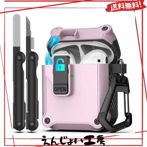 【ユニークなセキュリティロックと自動ポップアップ】アップグレードされたセキュリティロック設計により、開閉が簡単になります。「OPEN」ボタンを押すと、ケースの上部が自動的に開きます。 AirPods 充電ケースをしっかりと閉じた状態に保ち、カバーが落ちることを防ぎます。