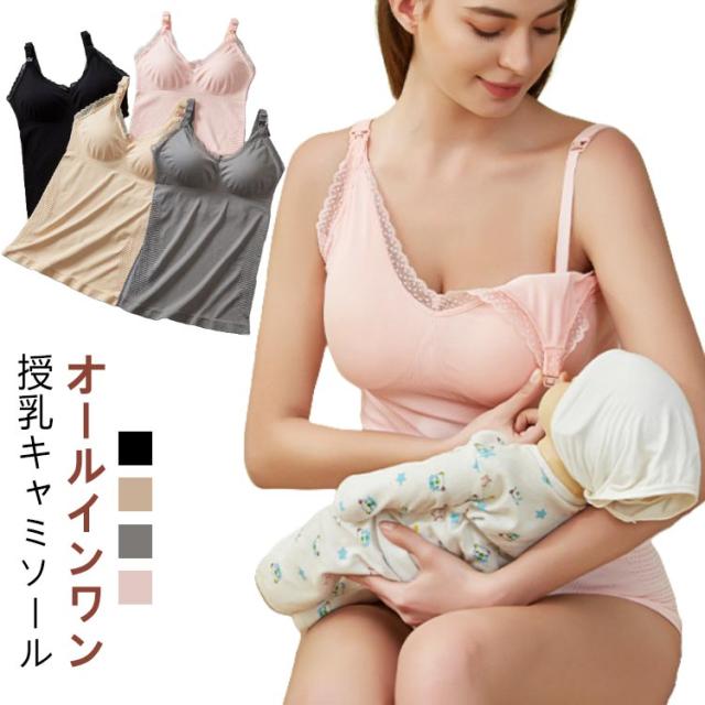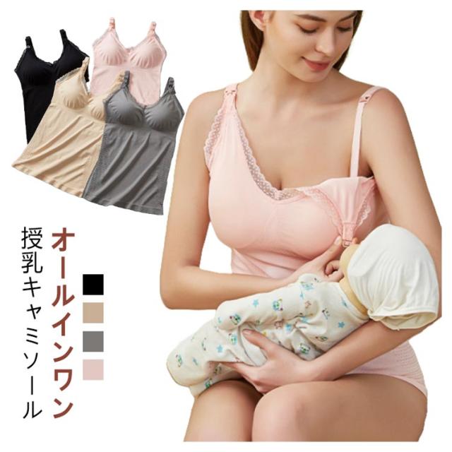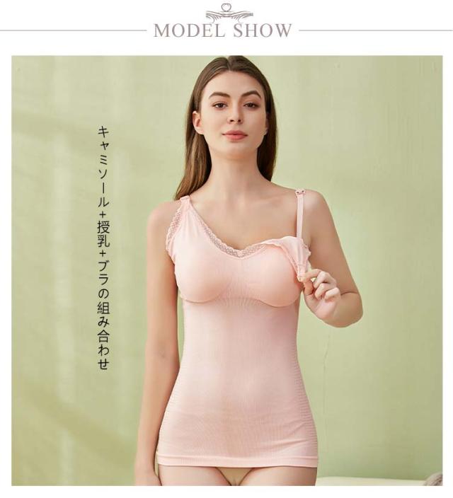 2枚セット 授乳キャミ ブラカップ付き フロントオープン マタニティ 授乳キャミソール レース 可愛い おしゃれ 妊婦 授乳ブラ マタニティキャミ シームレス お腹が冷えない 大きいサイズ 授乳服 ランジェリー 伸縮 ストレッチ素材 片手で外せる パッド付き 下着