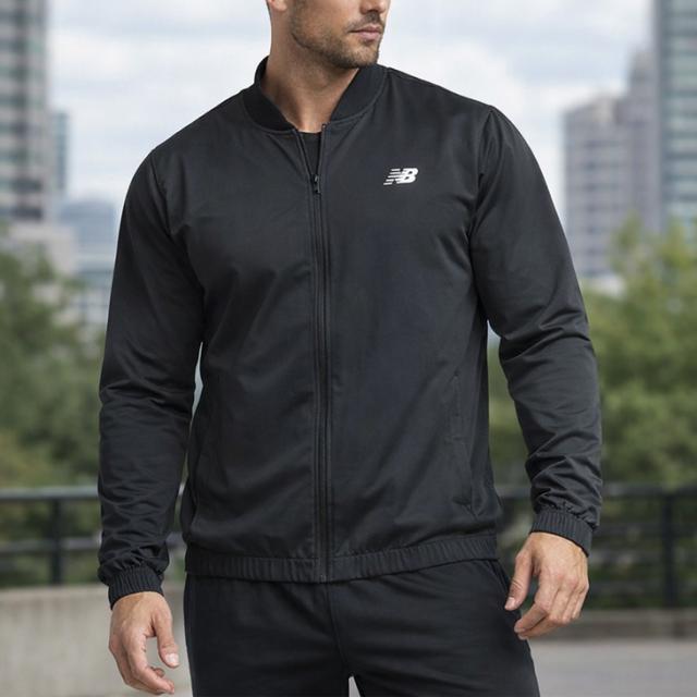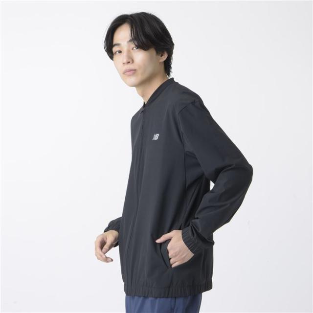 ニューバランス ウィンドブレーカー メンズ Newbalance ストレッチウーブン ボンバージャケット 長袖 裏メッシュ アウター 吸汗速乾 ドライ トレーニングジャケット 男性用 上着 スポーツウエア ブランド ブラック 黒 ジャンバー アパレル/MJ41017-BK