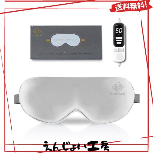 SONICER ホットアイマスク USB 電熱式【純シルク製&極上リラックス】「LEDデジリモコン」 温度調整可能 タイマー 安眠 軽量 圧迫感なし