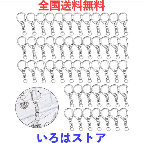 【商品仕様】キーホルダー金具*50個、サイズ:全長約47mm、幅約18.5mm、丸カン:外径8mm、ナスカン:(縦・外寸)約23mm。