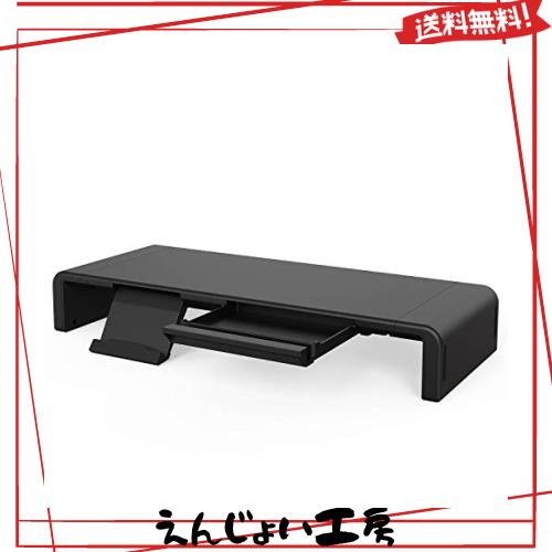 収納力抜群:モニター台の下にキーボードやマウスなどを収納できるスペースがあり、キーボードをホコリから防ぐことができ、デスクトップの作業スペースも広く取れます。引き出しやスマホホルダーも付いているので、オフィス用品を収納し、スマホやタブレットを置くことができます。