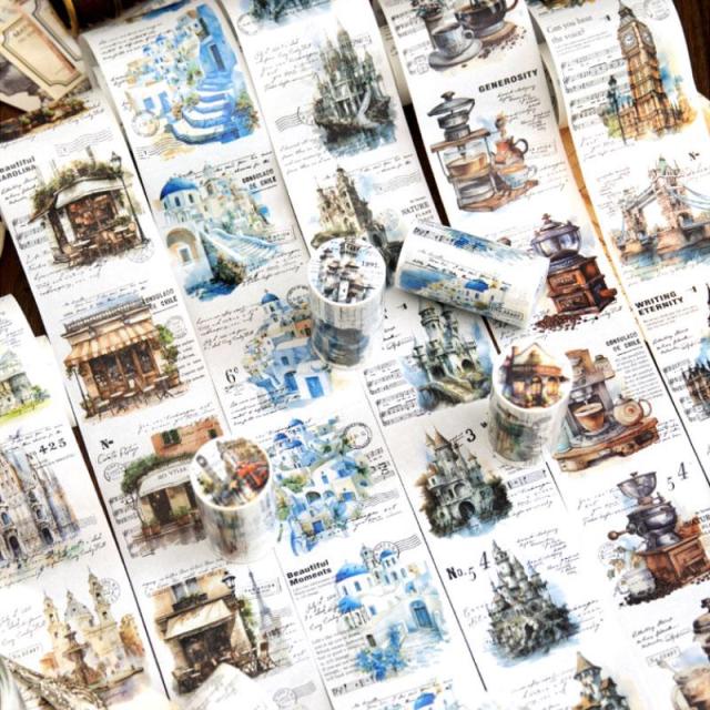 マスキングテープ マステ MT403 建物 地中海 時計台 城 コーヒー カフェ ジャンクジャーナル アンティーク ヴィンテージ レトロ 海外 テープ