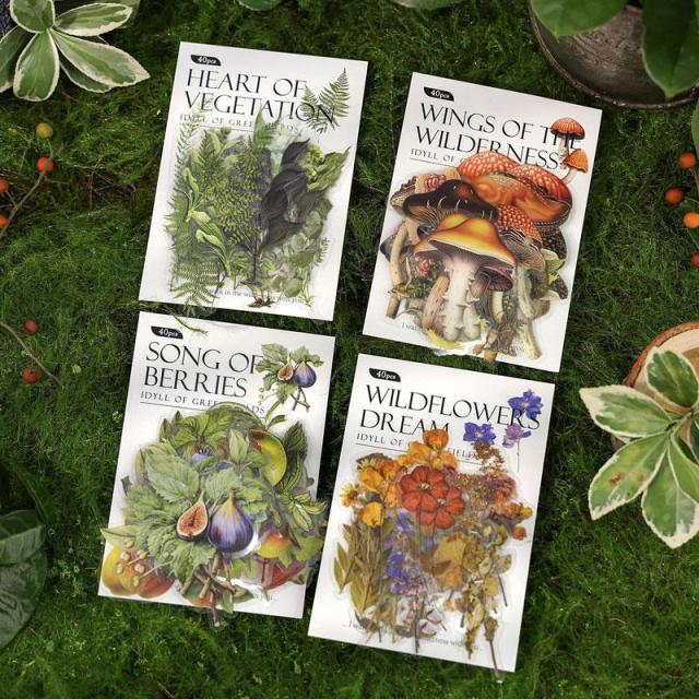 シール ステッカー ST426 押し花 果物 フルーツ きのこ 植物 ジャンクジャーナル アンティーク ヴィンテージ レトロ 海外 手帳 フレークシール