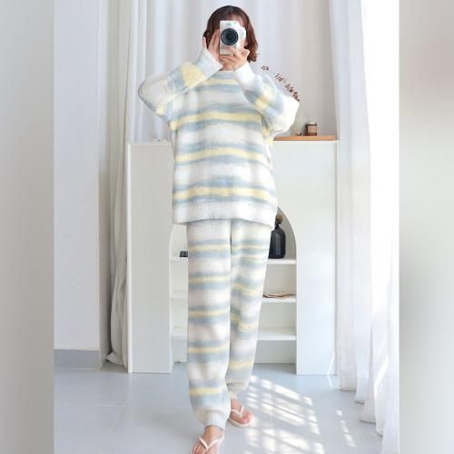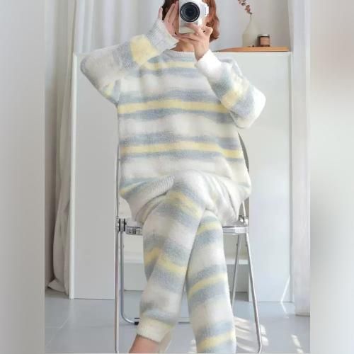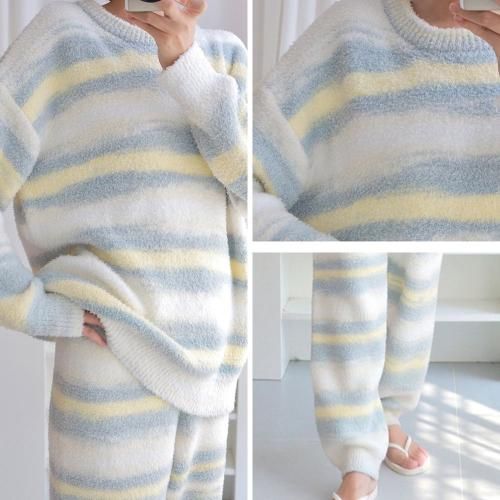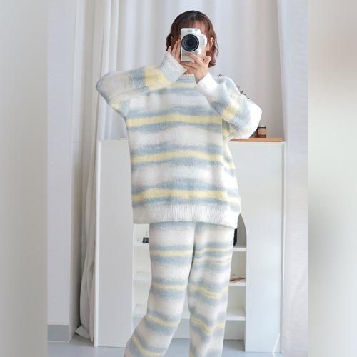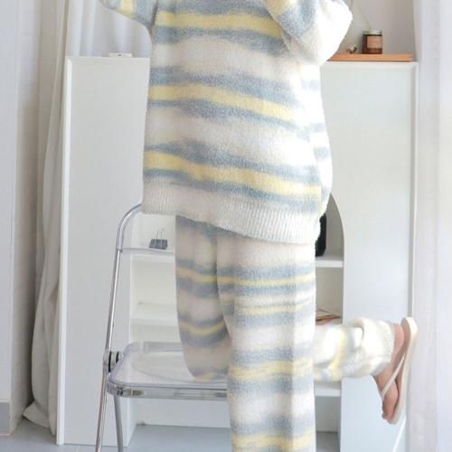 【グラシア】 ルームウェア モコモコ パジャマ 部屋着 カジュアル グラデ しっかり ボーダー 快適 柔らか ホワイト フリーサイズ