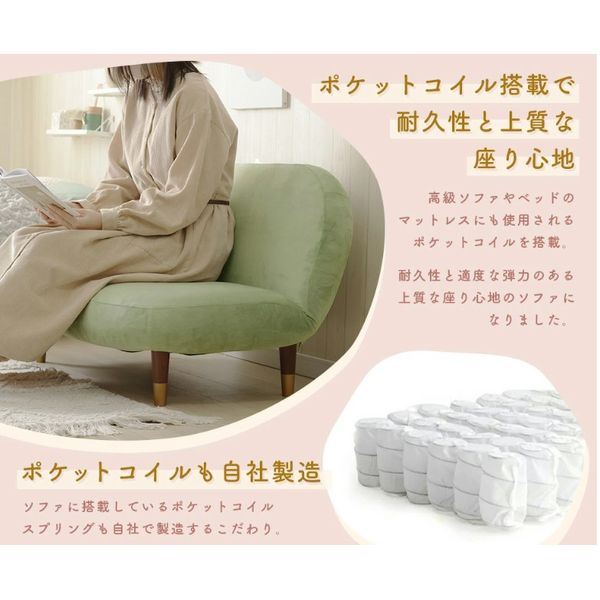 丸いフォルム・落ち着きのあるくすみカラーの脚付きソファ