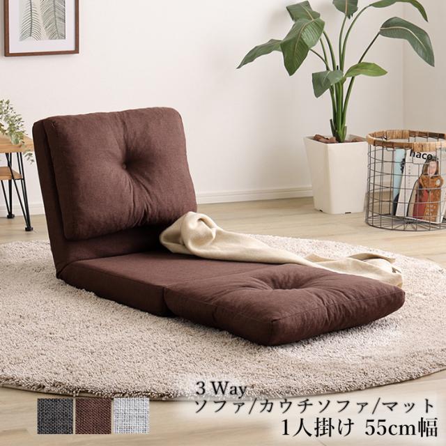 1人掛け ソファ 55cm幅 ソファ-カウチソファ-マットレスの3way 布張り 背もたれ14段階リクライニング クッション チャコールグレー グレー ブラウン全3色 PLO