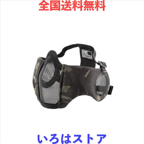 OneTigris 耳保護付き メッシュ フェイスガード ハーフ 曇らないフェイスガード サバゲー装備 コスプレ (黒の迷彩)