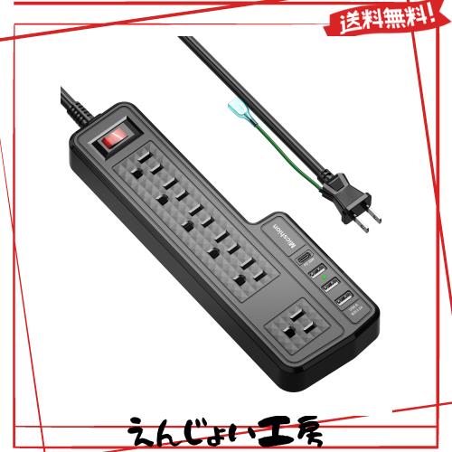 Micshion 電源タップ Type-C付き コンセント(2400W) 延長コード2m 6AC充電口 4USBポート 壁取付用固定フック 急速充電可能 雷ガード