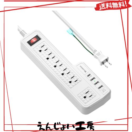 Micshion 電源タップ Type-C付き(PD機能) コンセント(2400W) 延長コード2m 6AC充電口 4USBポート 壁取付用固定フック 急速充電可能