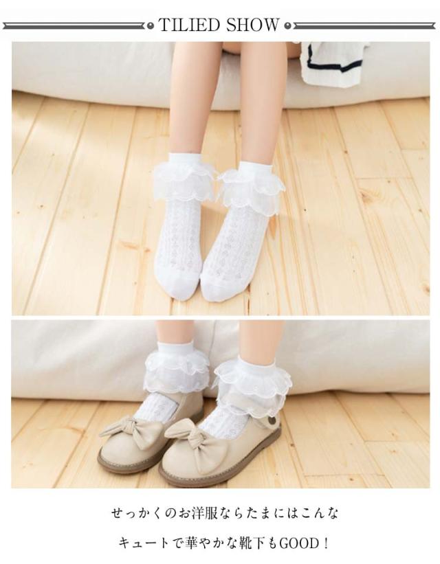 | 可愛い子供用靴下が登場!!! レースフリルでより乙女心に磨きをかける大ポイント せっかくのお洋服ならたまにはこんなキュートで華やかな靴下もGOOD! 入園式 入学式 卒園式 卒業式 七五三 発表会 結婚式 などフォーマル用として。 クルー丈( 足首丈 ショート丈 )は使いやすく 平編み 仕様なのでオールシーズン大活躍! 清潔感のあるシンプルなデザインは使いやすくフォーマルから普段着までOK! 履き口のリブ編みはきつ過ぎず気になるチクチク感やゴワつき感もありません。 柔らかな素材はズレにくく優しいフィット感で開放感もあるので履き心地は快適 お姫様系ファッションやロリータ系ファッションが好きな子にもオススメ 女の子がいる方へのプレゼントとしてもとてもオススメです。 | |