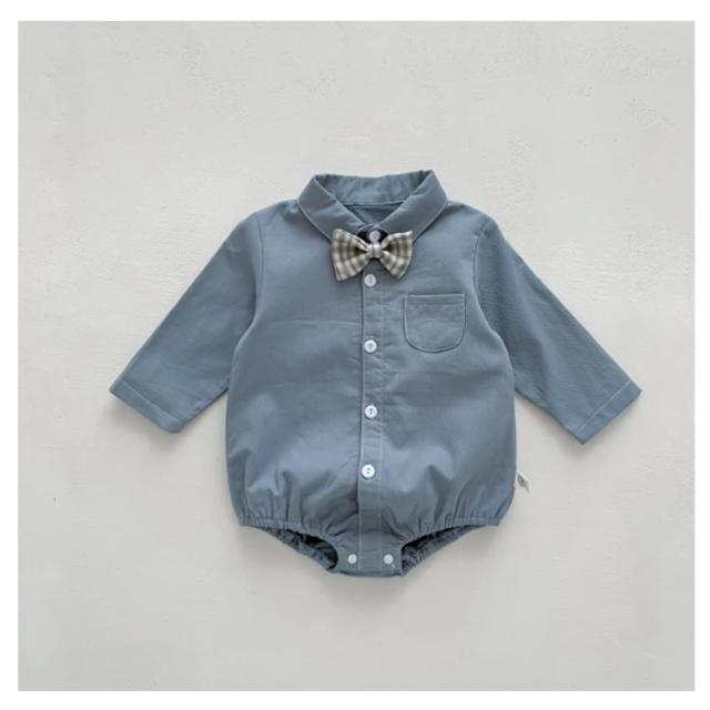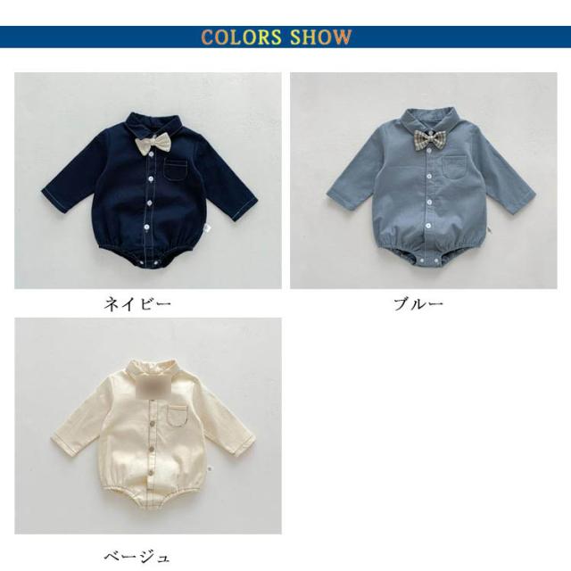 ベビー服 カバーオール フォーマルロンパース 蝶ネクタイ付き 新生児 子供服 シャツ風ロンパース ロンパース 男の子 赤ちゃん 襟付き 長袖 ロンパース 股下ボタン お食い初め 服 春 秋 フォーマル ロンパース