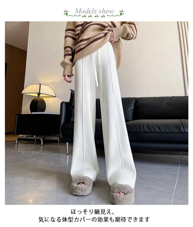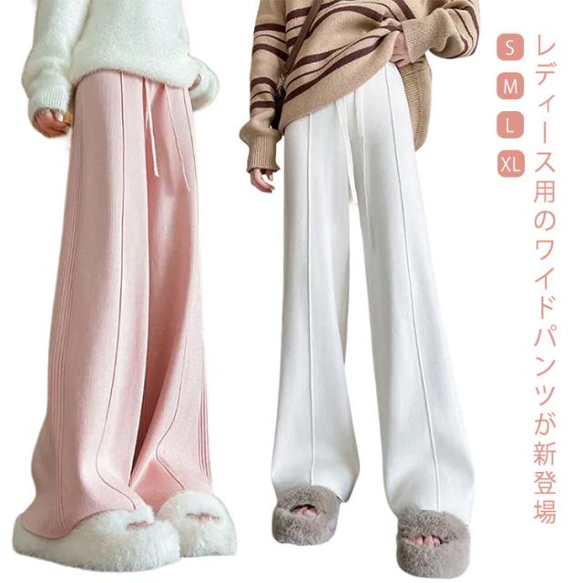 秋冬 ボトムス ワイドパンツ ガウチョパンツ フレアパンツ ニット ロングパンツ リブニット レディース ズボン ニット パンツ ワイドパンツ ゆったり 美脚 おしゃれ おしゃれ 大人