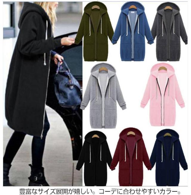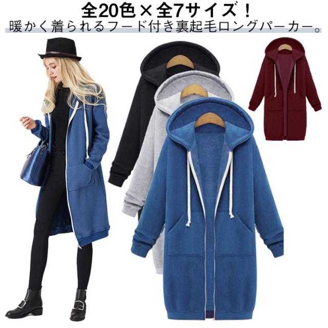 全20色×全7サイズ!ロング丈 全20色×全7サイズ!ロング丈 ロング丈 厚手 パーカー レディース 長袖 ロングパーカー 裏起毛パーカー パーカー アウター ポケット付き 裏起毛 パーカーワンピース あったか ジップアップ 暖かい コート おしゃれ カジュアル スウェット