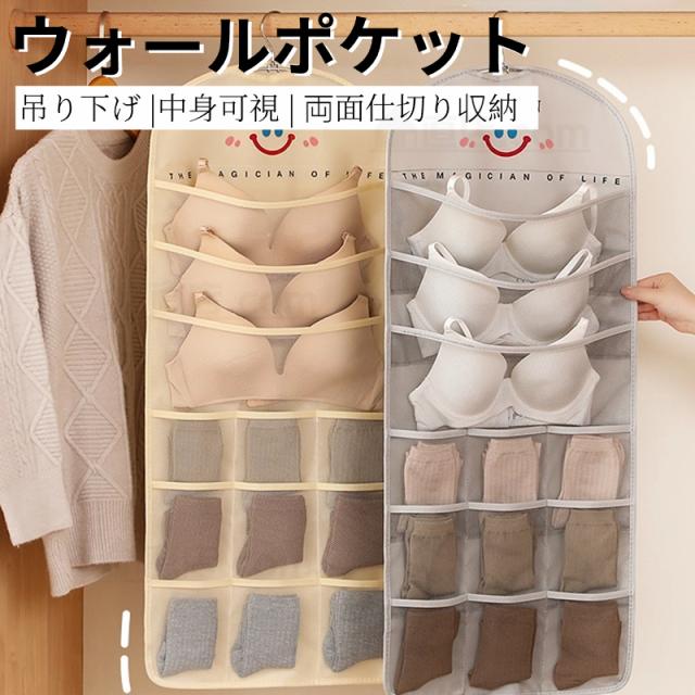 吊り下げ収納ポケット 24ポケット ウォールポケット クローゼット 両面収納 仕切り 壁掛け 大容量 下着収納 ソックス パンツ ブラジャー収納ポケット省スペース【L169】