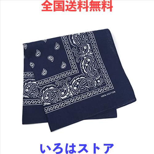 [Trifong] バンダナ ネイビー 綿100% コットン カシューナッツ柄 ペイズリー ハンカチ 紺 ユニセックス 大判 55?×55?