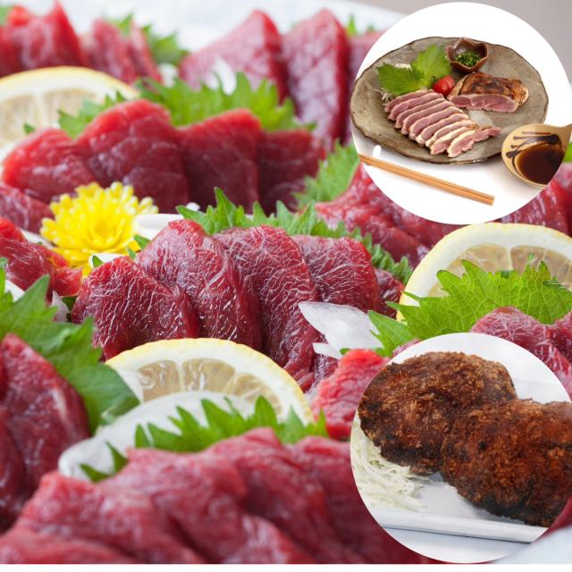 くまもと食彩の力 馬刺し 天草大王 あか牛 3種類セット 馬刺し 赤身 & 天草大王 ももたたき & あか牛 メンチカツ 熊本 馬肉 地鶏 あかうし