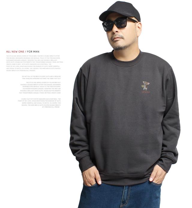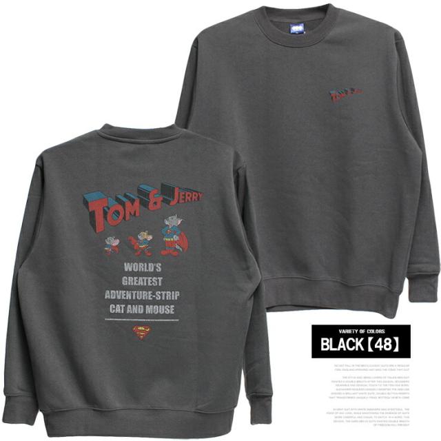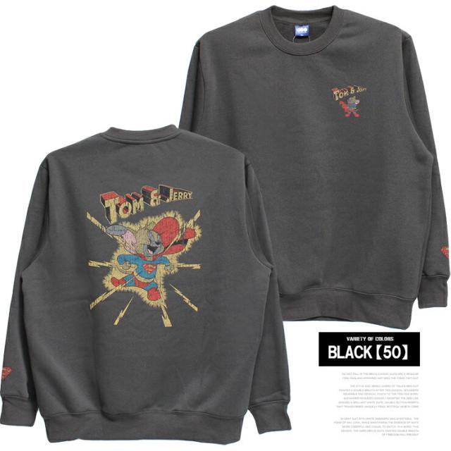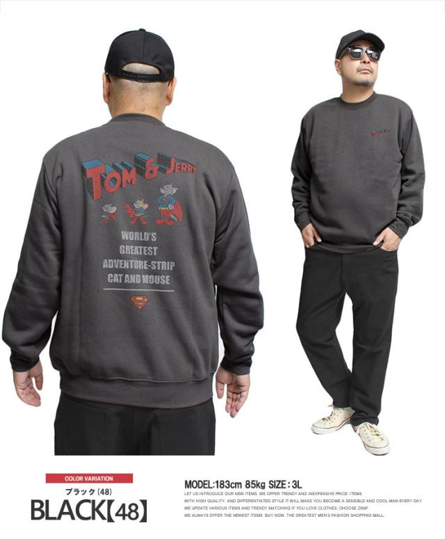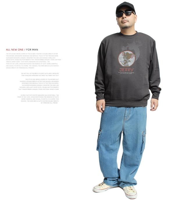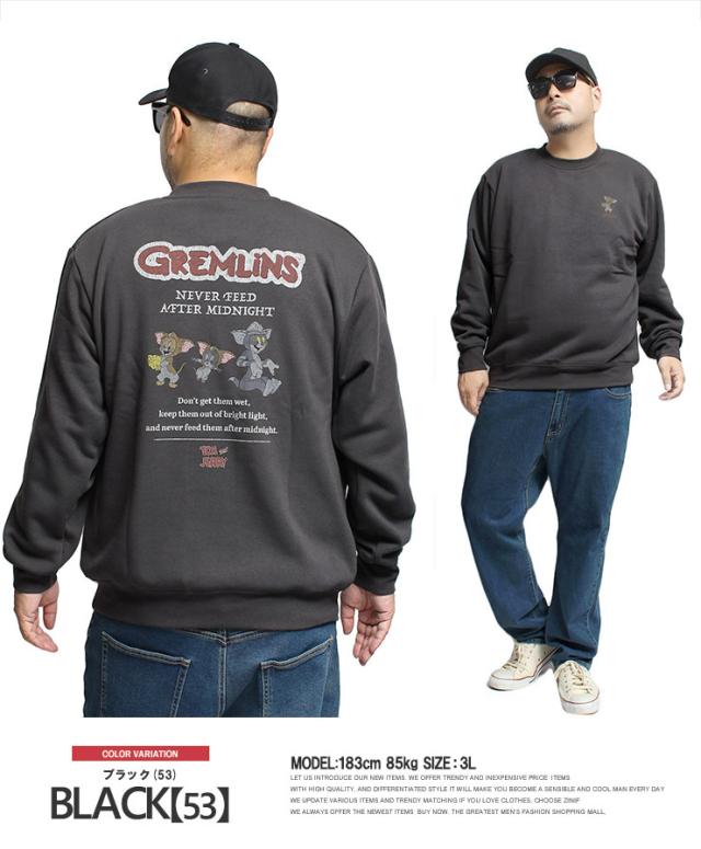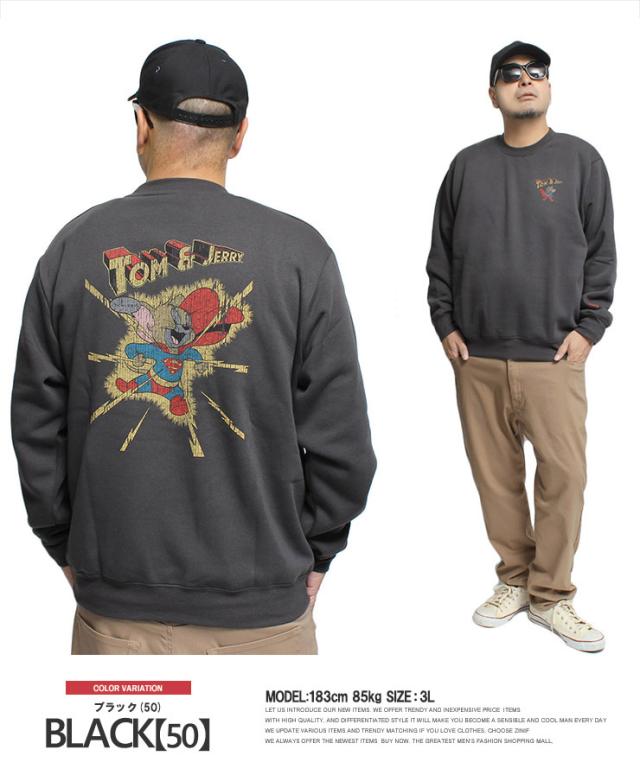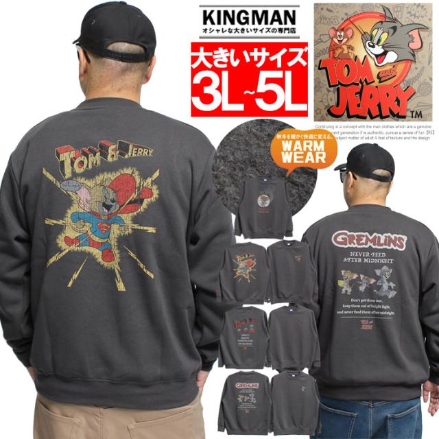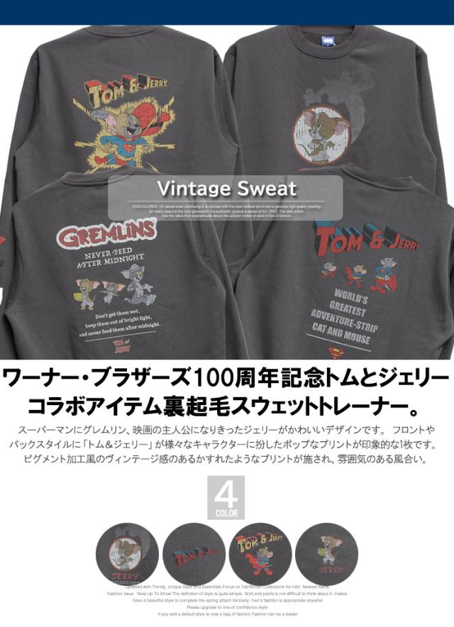送料無料 TOM AND JERRY(トムとジェリー) スウェット メンズ 大きいサイズ ピグメント風 裏起毛 ワーナー コラボ キャラクター プリント トレーナー グレムリン スーパーマン アメコミ アニメ 映画 漫画 スエット かわいい ヴィンテージ風 ワークマン プラス サイズ